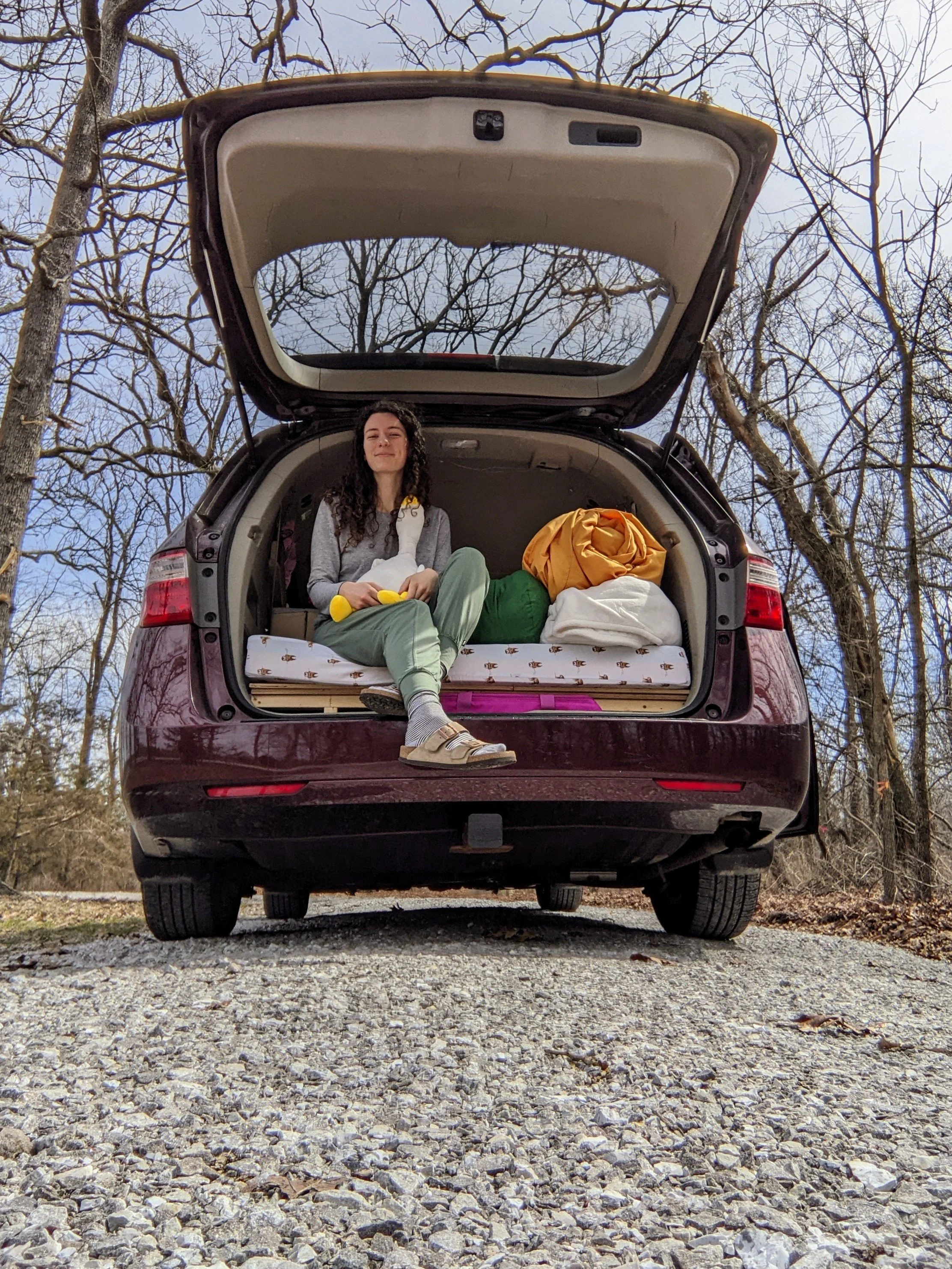 Two years later, I briefly regained my road tripping magic while driving out east to visit family. I hunkered down on a shady street in a quiet commercial development near a hotel, stopping on my way home from Winston Salem, NC. My previously smooth bed time dance had turned clunky without practice, and it took me triple the time to set up the sheets, cover the windows, pee, and brush my teeth. Settling in for the night felt like meeting an old friends who had drifted away—a reunion that I know is one-of-a-kind, but can’t bring myself to treat as such. It echoed the painful but essential lesson of my twenties: no treasured relationship is impervious to tarnish.